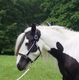 Date of Birth: April 12, 2007 BF Gypsy Rose X Lion King Color: Black and white DNA Tested: Red Factor: Ee Tobiano: TT Lethal White Overo: nn PSSM1: nn Registration: GVHS GV01017F GVHS 5-STAR MARE Layla Rose is a beautiful, well-built daughter of the one and only Lion King. She has a chunky build, lots of bone, thick mane, and profuse feathering. She has one bright blue eye. Thank you Ron and Kate Cowan for letting me add this outstanding girl to my family! MUCH-LOVED FAMILY MEMBER - NOT FOR SALE! |