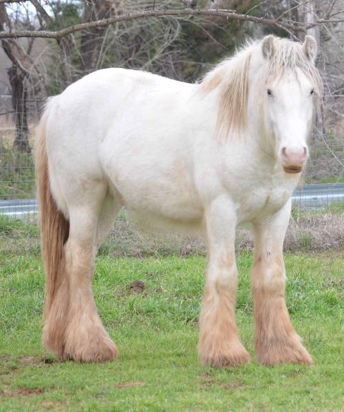 | Date of Birth: May 4, 2017 Rainbow of Lexlin x Trampas Registration: GVHS GV05681 London Irish is a beautiful, sweet boy. Although he looks white in the pictures, he has a speckling of dark patches on his back. His white appearance comes from the sabino1 gene. He also carries 1 cream gene. His sire, Trampas, has done very well in the show ring. His dam has not been shown due to a hoof injury. DNA Tested: Red Factor: Ee Agouti: aa Sabino 1: nSb1 Cream: nCr PSSM1: nn |