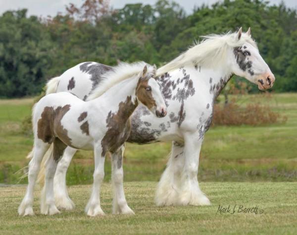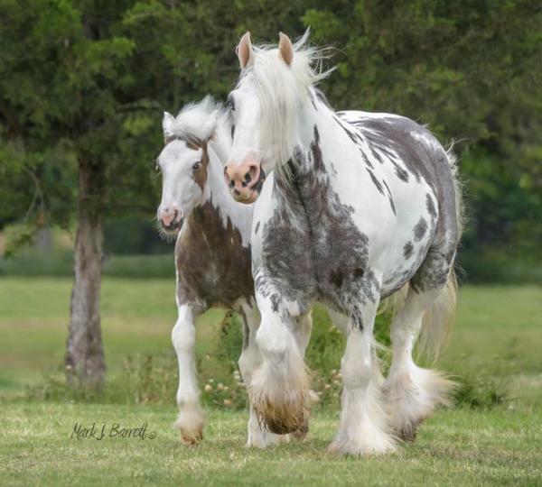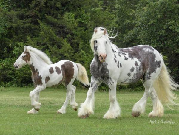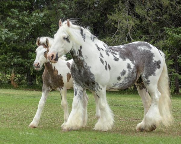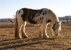 | Registration: GVHS GV00639F Siobhan, like Calamity, is a sweet, gentle girl. Chunky, massive build and wonderful conformation. Bright blue eyes. One of the most striking and well-built gypsy horses I've seen. Siobhan is a sweetheart with a heart of gold and an impish sense of humor. Imported from Ireland in early 2006 from Clononeen Farm. Born: ? 2002 Sex: Mare Color: Black and white Sabino1 with 2 light blue eyes. DNA Tested: Red Factor: Ee Tobiano: nT Sabino1: nSb1 Gray: nn Lethal White Overo: nn MUCH LOVED FAMILY MEMBER - NOT FOR SALE! |